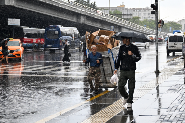 Başkentte öğle saatlerinde başlayan yağış nedeniyle zor anlar yaşayan vatandaşlar, köprü altlarında ve otobüs duraklarında yağmurun durmasını bekledi.